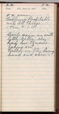 Lena is herself 7th months pregnant -- with Agnes, due in November. She also dealt with 'faintings' or seizures of which she was later cured by faith healing according to her witness or testimony written in 1960 at age 82.(The Forney family was shown above in photo for Sept 12.)